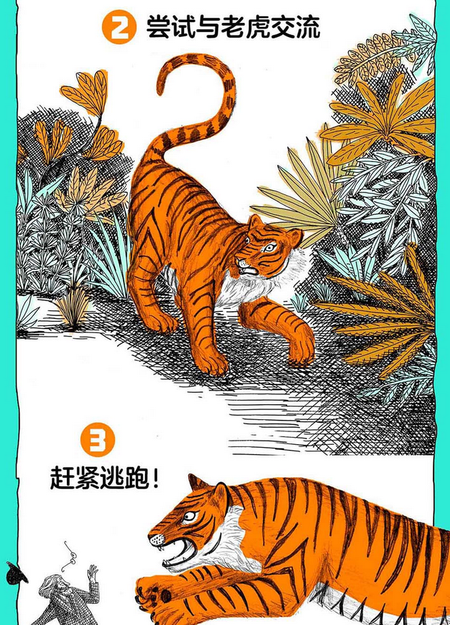 这是一本富有哲理的故事书。 一个学识渊博的老先生决定实地考察孟加拉虎,他雇了一个年轻的向导,然后进入了丛林。年轻向导从小生活在丛林里,他一直想提醒老先生,但他每次张口都被老先生傲慢地打断。自以为是的老先生根本听不进别人的话。当他终和老虎相遇时,一切为时已晚。而年轻向导一直想告诉他的话,只是短短一句:老虎危险! 这是一个充满讽刺意味的故事,它告诉我们拥有知识并不等于拥有智慧,即使学富五车,也要懂得学以致用,不然无法解决实际问题。