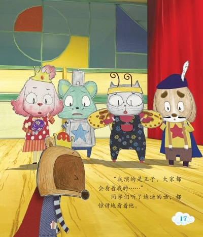 班上要排演一场话剧,有蝴蝶、王子、坏蛋、公主等各种角色。可是,大家都想演帅气的王子和美丽的公主。露露老师让大家抽签决定自己的角色。宏西因为抽到的是蝴蝶而有点儿不开心。回到家里,姐姐告诉他,只有蝴蝶可以飞,而他们正好有云彩面包,这样一来会演得很好的。小剧场里,家长们正期待着孩子们的精彩演出。不料,扮演王子的迪迪因为紧张,刚出场就摔了一跤……在这个关键时刻,聪明的宏西想出了好办法,挽救了尴尬的场面,他救了王子!