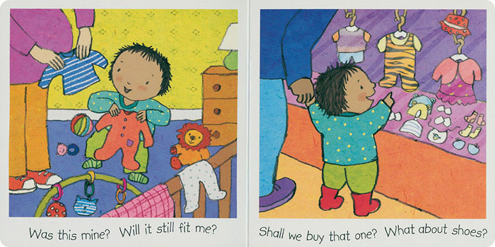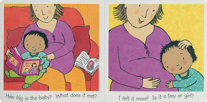 《Waiting for Baby》讲述了书中的小主角听着妈妈肚子里的胎动、帮忙布置弟弟的房间、用画画想象弟弟的长相、陪妈妈产检来做好当哥哥的准备。