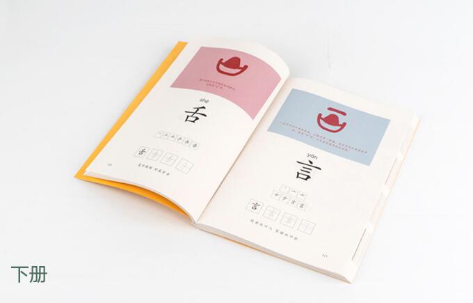 上册一个字用2页篇幅学习,6字为一单元。下册一个字用1页篇幅学习,8字为一单元。