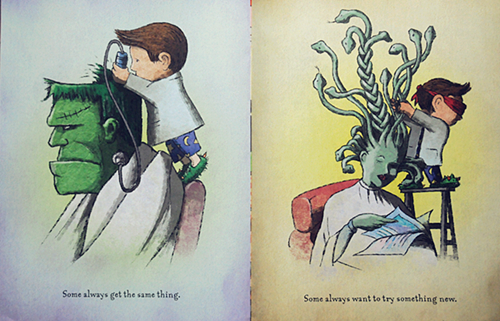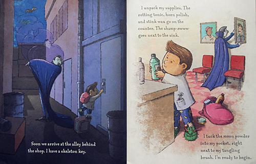 Just before midnight, on the night of a full moon, a young barber stays out past his bedtime to go to work. Although his customers are mostly regulars, they are anything but normal--after all, even monsters need haircuts. Business is steady all night, and this barber is prepared for anything with his scissors, rotting tonic, horn polish, and stink wax. It's a tough job, but someone's got to help these creatures maintain their ghoulish good looks.