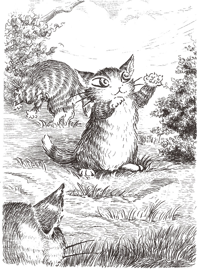 “喵呜,喵呜。”汤姆连声叫着,就像真的要淹死了。丽玛从床上一跃而起。