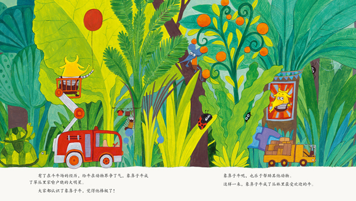 这是象鼻子牛的成长,也是大家的共同成长,一个认知世界,分辨善恶的过程,也让孩子在故事中明白该用怎样的方式与世界相处。