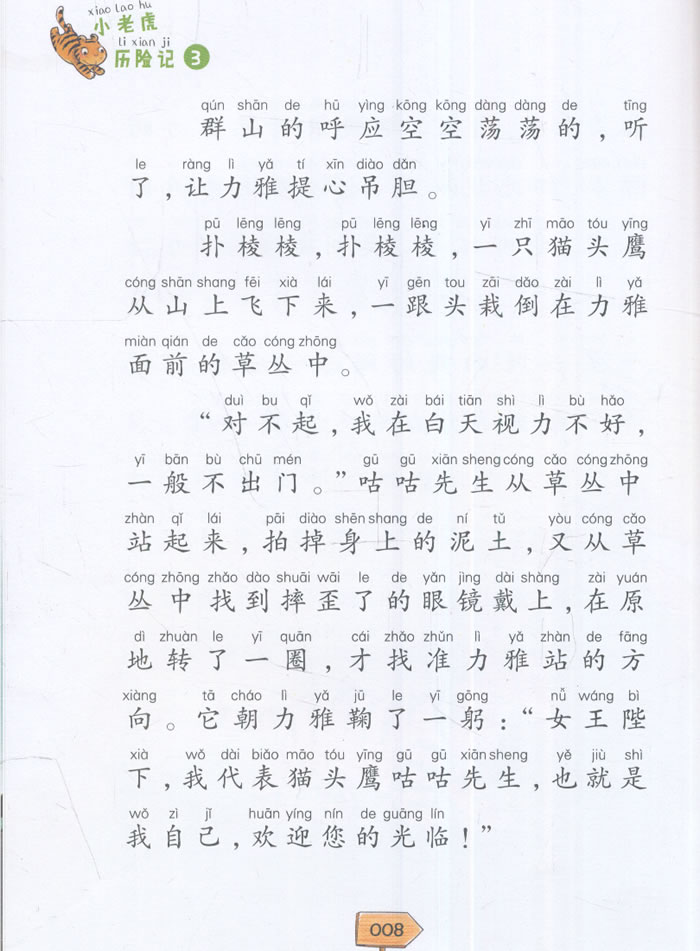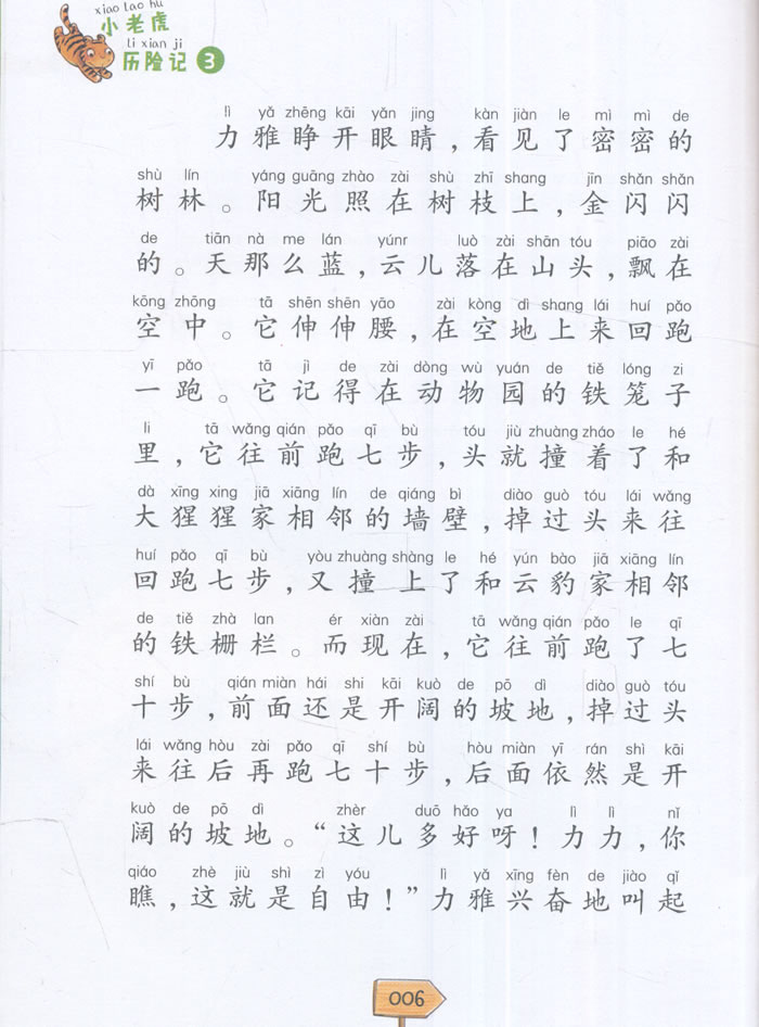 《小老虎历险记(3红霞大山彩图注音版)》为* 名童话作家汤素兰为小读者倾情打造动物历险童话,讲述了小老虎和妈妈从动物园逃出来、返回大自然的过程中遇到的一系列冒险故事。内容包含了友谊、亲情、勇气、亲近自然、爱护动物等正能量主题。