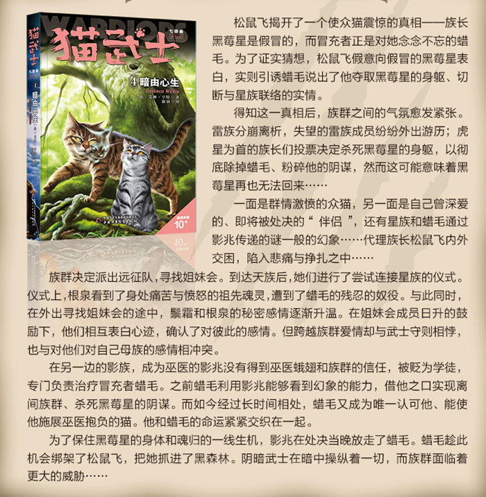 这位武士不会善罢甘休, 除非他认定,“夺走”他一切的 每一只族猫,都为之付出了代价。 冒充者的身份终于揭晓,但族群间非但没有弥合分歧,反而在争吵和冲突中越陷越深。五族混战后,族群的问题依然无法解决。如今,连松鼠飞也不敢保证,黑莓星能否保得住可以回归的身体……