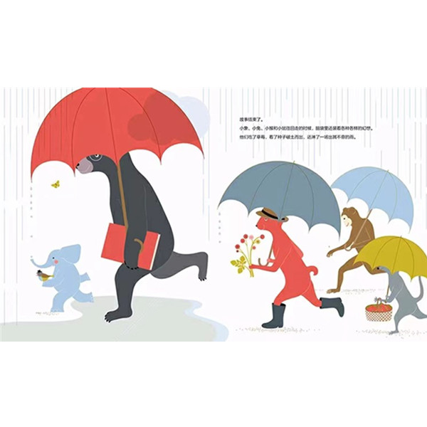 《熊妈妈的故事会》是一本关于阅读乐趣、阅读方法、阅读意义的书,通过熊妈妈的一次完整的故事会,让孩子们知道了应该怎么听故事、故事中会有什么、故事会给我们带来什么。对于幼儿园、学校、家庭、图书馆、绘本馆来说,这样一本讲故事的“范例书”可以让孩子有很多实际的收获,是推广阅读、让孩子爱上阅读的好助手。 高高的大树下铺着柔软的毯子,小朋友们挨个儿坐好,熊妈妈的故事会开始啦!今天她给大家带来了四个故事,每个故事都是特别为一个孩子准备的……四个故事都讲完的时候,孩子们还意犹未尽,有的想分享,有的想讨论,有的自己捧起书又看了起来……以前从没听过故事的小刺猬也翻开了书!