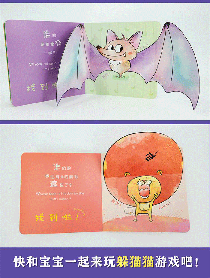 《幼儿全脑开发早教互动翻翻书》全套图书共6册,每册选取5个常见并深受人们喜爱、不同种类、不同外形特征的小动物,并依据动物不同的外形特征,用最简单的方式放大了动物们的身体特征,用动物的部分身体把它们的真实身份藏起来,让孩子和小动物玩“捉迷藏”,并在玩的同时,记住动物们的特征,认识更多动物。全书采用中英双语,用一些最简单的词汇引导孩子,让孩子认识一些简单的中英文词汇,边玩边学。