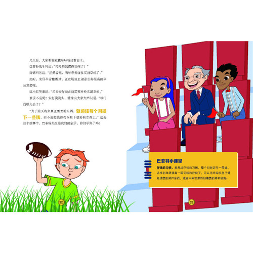 来了!这是巴菲特亲自参与创作的儿童财商故事! 也许,没有人比巴菲特更懂投资理财。他是投资界不倒的神话!5岁摆摊卖口香糖,9岁做市场调查,11岁买下人生中首支股票,56岁跻身亿万富翁行列,78岁成为世界首富……这一切都离不开巴菲特在孩童时期就开始的商业思考与实践!从小就开启财商启蒙的巴菲特,深知财商教育的重要意义。为此,他以自己为原型专门为孩子创作了动画片Secret Millionaires Club,还邀请黄金搭档查理·芒格、微软公司创始人比尔·盖茨友情“出演”,参与配音制作。本套《巴菲特给孩子的财商课》全部改编自该动画片。故事中,睿智博学的巴菲特化身神秘俱乐部主任,与电脑高手阮小磊、冒失鬼周安仔和迟到大王厉娜三个孩子一起讨论投资与理财。 ﹡8册书16个故事,以生活视角讲述财富真谛! 如何把汽水卖出去?遛狗能做成生意吗?特长可以挣钱吗?信用卡可以经常使用吗?要不要存钱?……16个故事全部以孩子现实生活场景切入,每读完一个故事,便能收获一份财富真谛!投资理财并不是高高在上、遥不可及,购买适合自己的商品、养成存钱的习惯、对自己的行为负责……这就是巴菲特给孩子们的启示。 ﹡四大类共148个知识模块,多层次立体化展开财商讲解! 除了财商故事,全套书中共穿插148个知识模块:“巴菲特小课堂”对财商知识进行解读,提炼巴菲特的成功经验;“巴菲特箴言”不仅仅局限在商业现象本身,更关注孩子价值观的培养;“投资秘籍”总结理财知识点;“财富谜题”锻炼孩子的理财思维。多种形式帮助孩子培养正确的理财观念,以及积极的生活、学习、工作方式。 ﹡不仅仅是财商课,更是人生的投资指南! “授人以鱼不如授人以渔”,巴菲特除了教会孩子如何储蓄、消费、投资,更向孩子传授看待自我的正确方式。他建议孩子要持续保持竞争力,不断学习;学会挖掘成长动力,做自己喜欢或擅长的事;学会面对挫折,从错误中汲取教训;更重要的是懂得自己未来的投资方向和目标,持续对自己投资!
