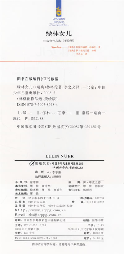在罗妮娅出世的那天夜里,闪电划破长空,惊雷在群山之上翻滚。啊,在那个雷鸣电闪的夜里,马堤斯森林里的妖魔鬼怪都吓得爬进洞穴躲藏,唯有令人讨厌的人面鹰身女妖特别喜欢这种天气。它们围绕着马堤斯绿林结伙者的城堡一边飞舞,一边欢叫。它们的叫声打扰着躺在城堡里正在分娩的洛维丝。她对马堤斯说: