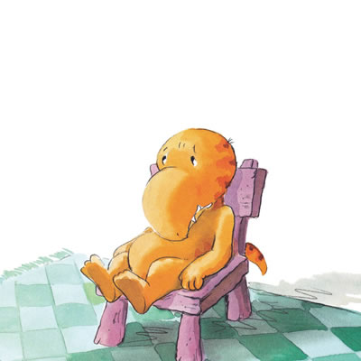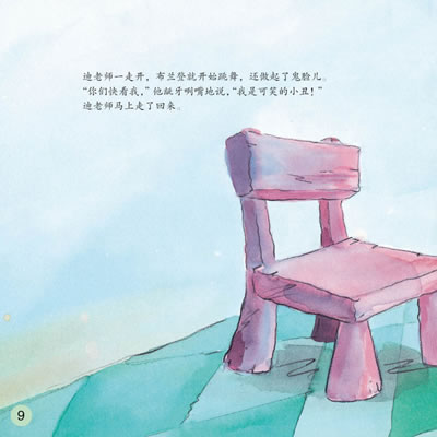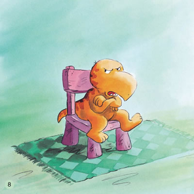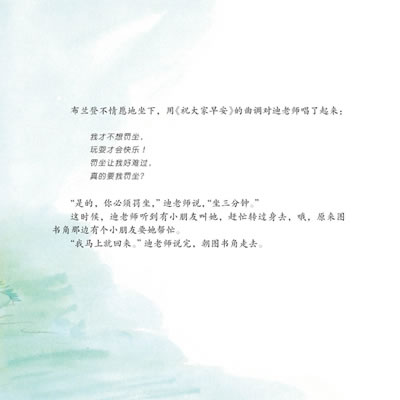 最后要说的,是系列图画书的最大亮点:这是一套可以边读边唱的图画书,每个故事里都穿插了两小段诗歌,一首出现在小恐龙遇到挫折、出现心理波动的时候,另一首则出现在问题得到解决、心情豁然开朗的时候。我在以往给孩子们读书的过程中总结有这样的经验:孩子们最喜欢在听一个故事的过程中,穿插一小段能唱起来的儿歌,她们会跟着唱,而且会非常开心。于是,在翻译这些小诗时,我特意和出版社的编辑一起寻找了一些中国家长比较熟悉的欧美儿童歌曲,把诗歌处理成歌词的形式套用进去,并力求词句的上口和节奏、韵律的合拍。我们希望爸爸妈妈在给孩子读书的时候,真的能开口唱起来。也许我们自己唱歌“五音不全”,没有关系,只要满怀信心地大声唱出来,孩子们一定会非常开心,他们才不在乎自己的爸爸妈妈唱歌是不是“跑调儿”呢,而且很快也会参与其中。亲子共读,共唱,这样其乐融融的景象,是不是很令人向往?