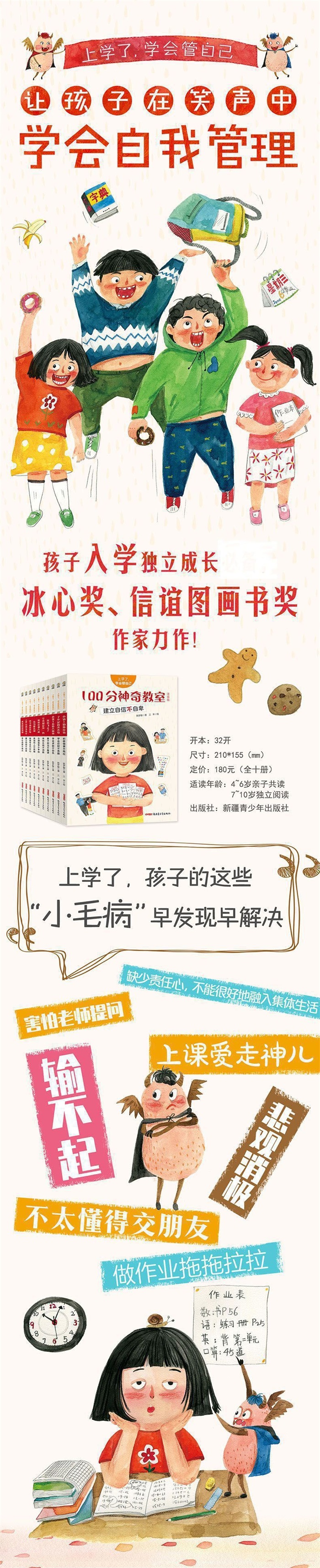 《了不起的米米塔》本书讲述了一个关于忍耐的故事,米米塔喜欢疯玩,上课坐不住,窗外小鸟的歌声常牵走他的耳朵,一次偶然米米塔得罪了小妖怪,于是他中了小妖怪的“魔咒”,只要听见“蚯蚓”二字,米米塔就得了狂躁症一般地乱跳,完全不受自己控制。这让他经常在同学们面前出糗。为了帮他摆脱魔咒,小伙伴们尝试了很多办法,在一场学校的防爆演习中,他的忍耐力意外地被激发出来,成功地解除了小妖怪的魔咒。