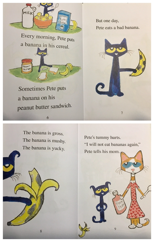 Pete猫吃到了一个坏的香蕉,它决定以后再也不要吃香蕉了,可是它又实在很喜欢吃香蕉。。。