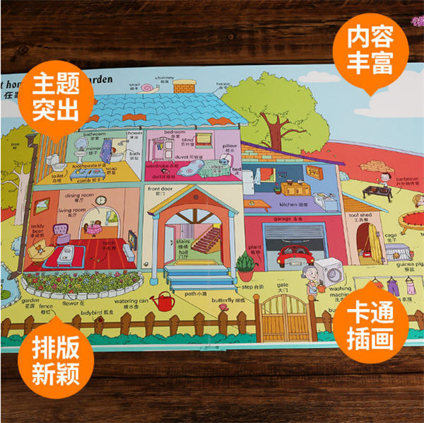 这是一本专为儿童编写的双语词汇启蒙大书,用生动有趣的卡通画面,描绘了25个不同主题画面,涵盖了大约1000个贴近儿童生活的常用英语单词。这是一本专为儿童编写的双语词汇启蒙大书,用生动有趣的卡通画面,描绘了25个不同主题画面,涵盖了大约1000个贴近儿童生活的常用英语单词。