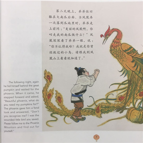 《凤凰山的传说》系杨永青先生绘画作品,原名《凤凰山》,由中国和平出版社初版于1991年。本次再版由儿童文学作家张菱儿依图撰文。故事讲的是:勤劳善良的弟弟救下一只小鸟,用小鸟送的种子种出许多南瓜。弟弟发现南瓜每天都会减少一个,原来他救过的小鸟是凤凰,凤凰把南瓜叼到凤凰山变成了金南瓜。弟弟按照凤凰的指点,切开大南瓜得到了金子。贪婪的哥哥得知后来到凤凰山,不顾凤凰的提醒,疯狂往自己口袋里装金子,最后被太阳烤死。