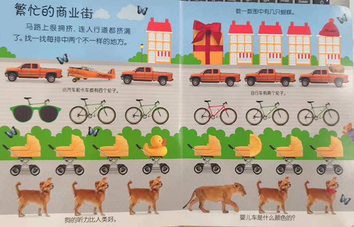 本书引进英国版权。本书围绕户外主题,提供了大量的场景,让幼儿在场景对比中训练观察力、注意力,提高专注力,锻炼思维能力。本书创意新颖,通过丰富多样的游戏形式、精美生动的插图展现,让幼儿在轻松快乐的启智游戏中,使大脑得到推理、判断、辨别、观察、记忆力等思维能力的训练。