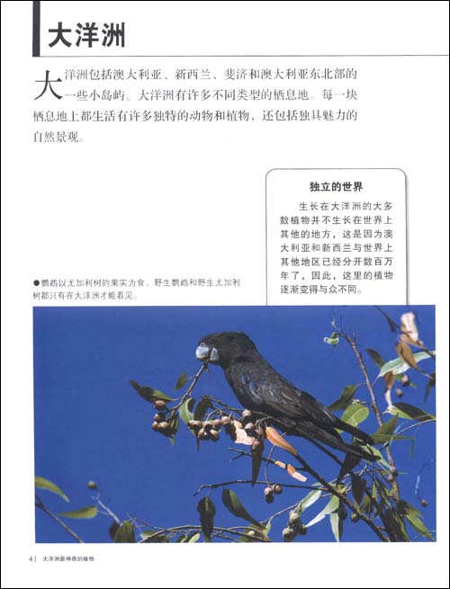 《我们爱地球·大洋洲最神奇的植物》内容简介:大洋洲包括澳大利亚、新西兰和邻近的一些岛屿。大洋洲有许多沙漠、高山和草原。现在,让我们一起来认识大洋洲最神奇的十种植物吧!桉树为什么能从荒原野火中幸存下来?寄生无花果树是怎么围剿其他树木的?豪猪草为什么能在干热的沙漠中生存?