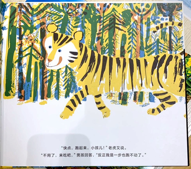 本书是引自法国、适合3~6岁儿童阅读的绘本。一只饥饿的老虎被一个小男孩如何从犀牛口中逃跑的故事迷住,从而忘了吃掉小男孩,被小男孩逃脱。本书最早出版于1963年,由插画家阿利基用最简单的方式和色彩呈现老虎和小男孩之间微妙的情绪变化,绝版五十多年,全新再版。