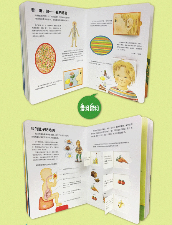 来自德国arsEdition出版社的《德国儿童玩与成长系列·我的身体》就是一本非常适合3-6岁幼儿的科普玩具书,它既是一套浅科普类翻翻书,书中的翻页呈现了科学的趣味性,能够激发孩子探索世界的好奇心。同时,它也是一套多功能互动书,抽拉页、转盘、触摸等互动设很好地调动了孩子的多种感官,满足孩子爱玩的天性。