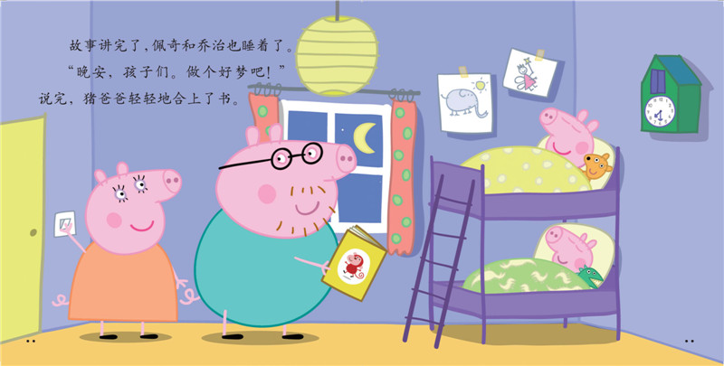 家庭是学龄前儿童的主要的教育场所,欢乐的家庭氛围会孕育出积极、乐观的孩子,父母的尊重和理解让孩子更自信。比如,面对孩子将玩具散落一地,是代劳收拾,还是责备孩子?猪爸爸和猪妈妈的做法,才是更智慧的方式。