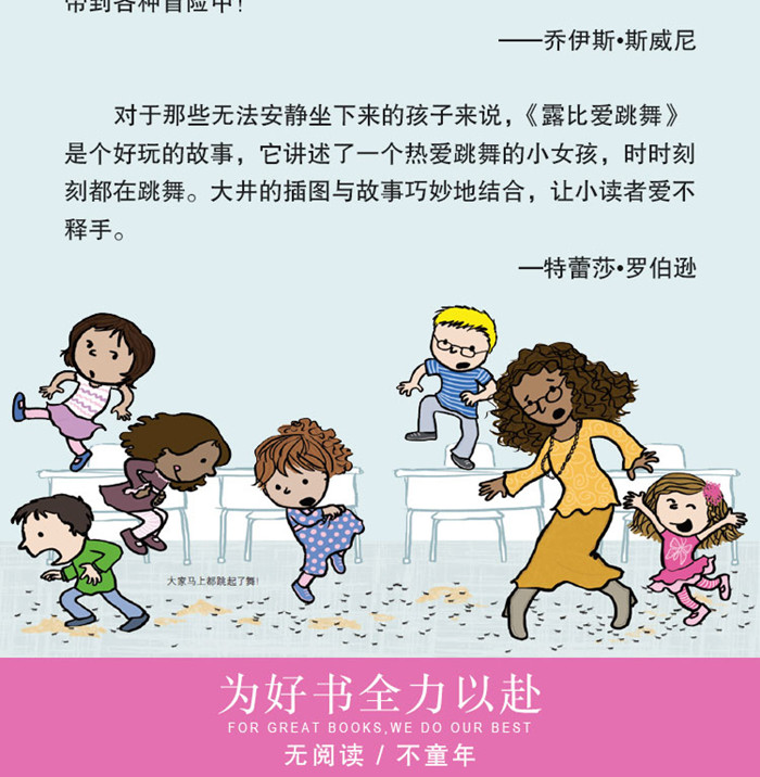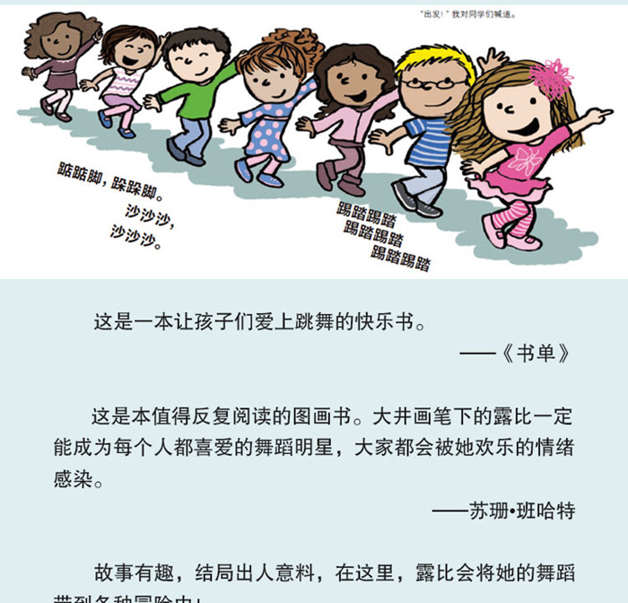 露比非常喜欢跳舞…… 她刷牙时,吃早餐时,上学的路上,她都在跳舞。 但是学校里不允许跳舞!那么哪里可以跳舞呢? 最后露比发现了一种方式,可以让每个人都跳起舞来。 这是一套如何引导儿童认知兴趣爱好的绘本,人物表情生动,激发孩子丰富的想象力。语言幽默风趣,符合儿童的心理特点。