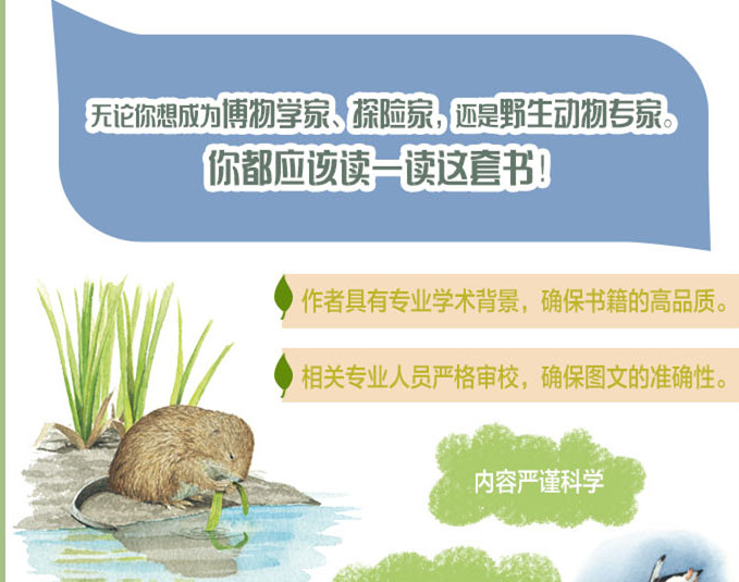 本套书包含了蜂鸟、鹦鹉、企鹅、猛禽、啄木鸟、鸟类、昆虫、鱼类。是一套极美的自然科普绘本,是知识、文学与艺术的完美结合,获得过美国教师协会年度杰出科普童书奖。作者用清晰、简要的语言,向小读者介绍了各种动物和自然生态环境。书中的插图优美、写实,能让小读者观察每一处细节,感受大自然的神奇和美丽,激发他们对生态环境的热爱和珍惜,具有很高的出版价值。