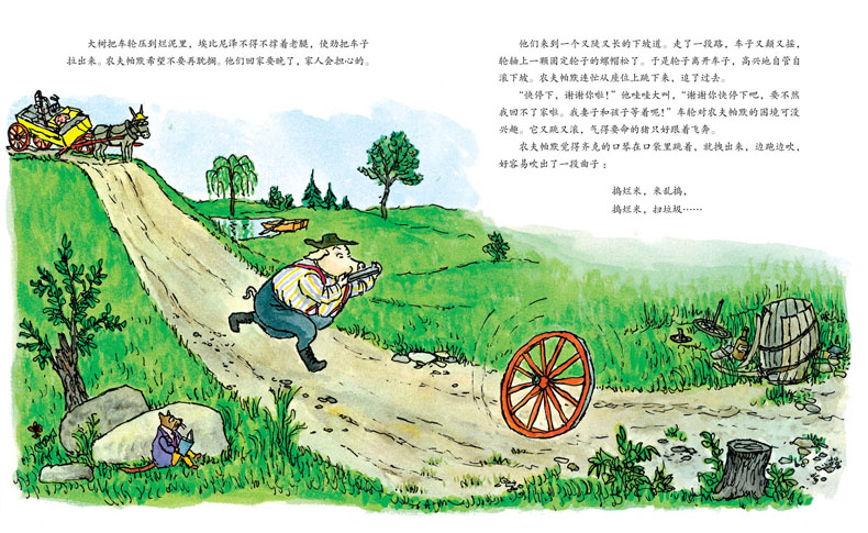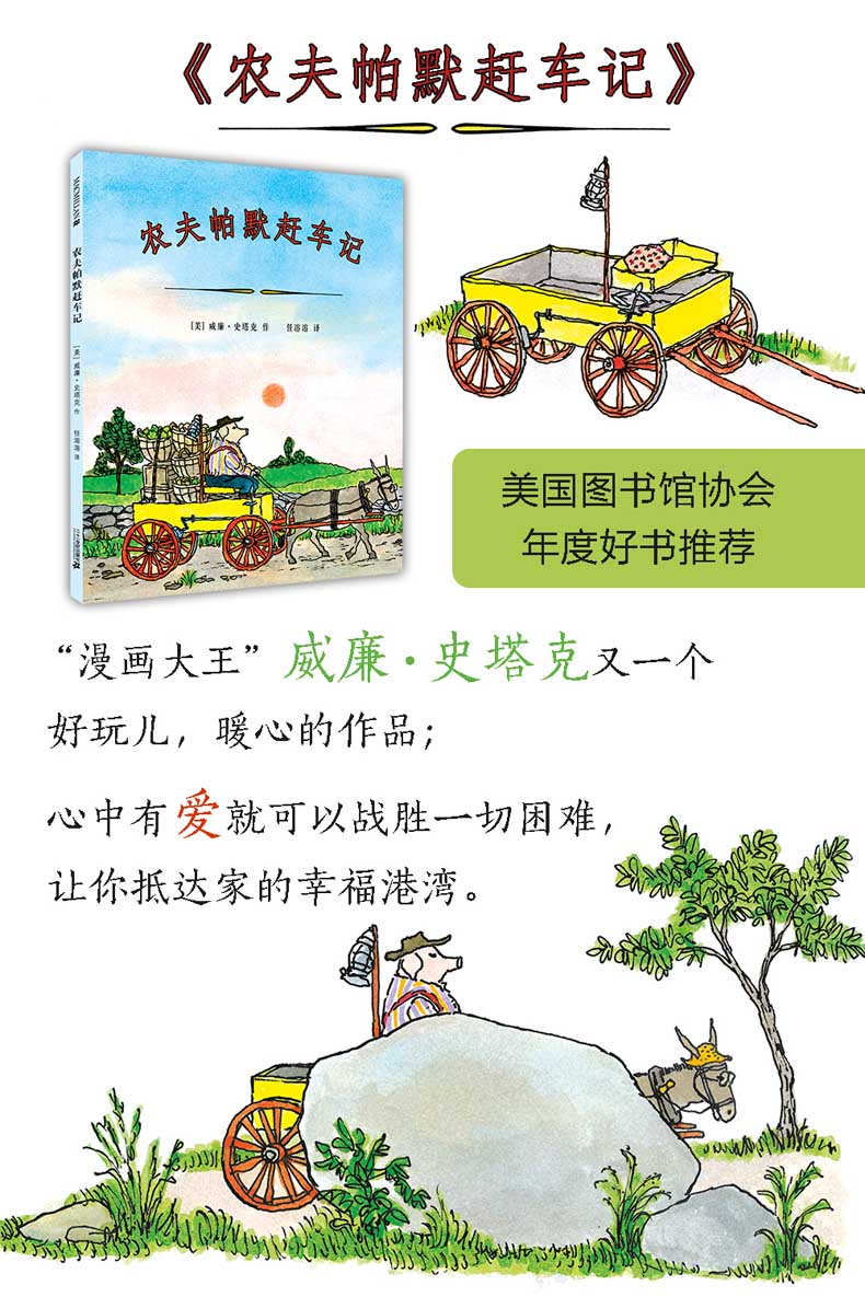 《农夫帕默赶车记》是威廉·史塔克的又一部好玩儿的作品。史塔克用自己一贯的风趣幽默,讲述了一个祸不单行、“噩运”来袭的故事。当你看到这个故事时,可能会觉得,农夫帕默的回家路怎么就这么不顺呢?怎么会有那么多倒霉的事情都发生在农夫帕默身上呢?然而,虽然他“人在囧途”,但心中一直有个信念——“回到亲爱的妻子和孩子身边去”!想到温暖的家、可爱的家人,无论什么困难都挡不住他的回家路。而在这看似糟糕的旅途中,读者一点儿也不会觉得辛苦——帕默焦急回家的心情让读者感受着家庭的温暖、幸福和谐的家庭关系,以及对家人的爱和责任。史塔克总是用他独具特色的语言带给人们一种愉悦感受,以乐观的精神来面对生活、面对一切。他总是给予孩子积极向上的精神力量。