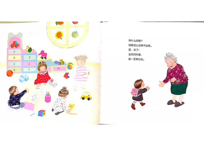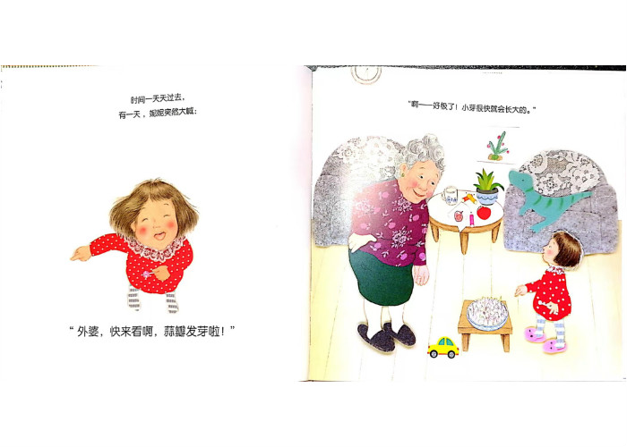 上课时,幼儿园老师给大家布置了作业:回家种一种蔬菜!种什么好呢?妮妮怎么也想不出来。对了!去问问外婆,她一定有办法。果然,在外婆的帮助下,妮妮种好了一盆蒜苗,放在阳光充足的窗台上,不多久,绿油油的蒜苗就长出来了。 当妮妮满怀希冀与憧憬地看着蒜苗长大,结果来了个大反转,蒜苗被吃了。伤心的妮妮会怎么办呢?她的家人又会怎么安慰她?蒜苗真的不会再长出来了吗? 绘本中有太多关于种植的故事,植物的培育、生长、收获带给孩子直观而深刻的情感体验,如《安的种子》《胡萝卜种子》《小恩的秘密花园》,当然还有《花婆婆》。把生活向幼儿敞开,让孩子接触最原生态的生活日常,放任他们敏锐好奇的触角自由地伸展、体验、感悟,或许这是《妮妮的蒜苗》这本小书的价值和意义所在吧。