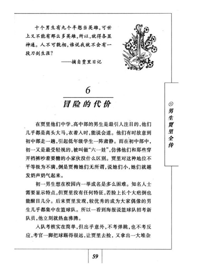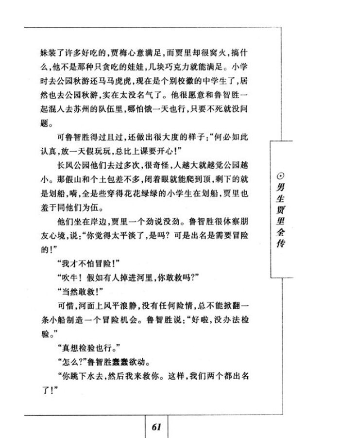 贾里一直说世上只有男生苦,没当过男生的不知道。一转眼,他就升入初三了,平时机智幽默的贾里,现在忙着升学,他和他的好兄弟们还有时间做行侠仗义之事吗?在他的成长过程中,有着怎样的感怀和遐想呢?
