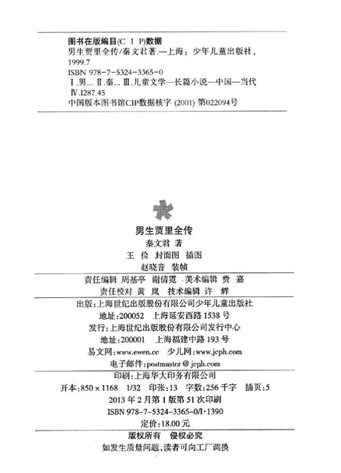 秦文君,深受千万小读者喜爱的儿童文学作家,现为中国作家协会全国委员会委员,上海市作家协会副主席,著有长篇小说《男生贾里全传》《女生贾梅全传》等五百余万字。她将儿童文学写作当成一生*美的事业,《贾里贾梅大系》是她标志性的代表作品。