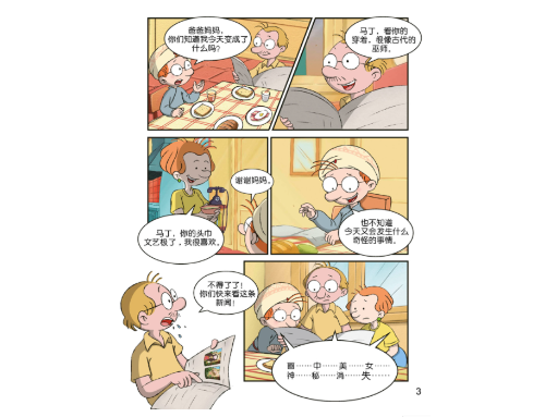 一个7岁左右的小男孩名叫马丁,郭莫和罗娜是他的好伙伴。每天早上当马丁醒来后,都会有一个新的角色在等待,并会发生一些不同寻常的事情。比如,他会力大无穷,变成超人,又会变成小龙人,变成国王,变成外星人,变成原始人,变成侦探,变成机器人,甚至克隆出三个马丁,由此而引发了一个个有趣的故事。《百变马丁39》是该套漫画书的第39册,包含《楼兰马丁(上)》《楼兰马丁(下)》《袋鼠马丁》《占星师马丁》4个故事。在每一个故事中,马丁都遇到了不小的困难,他时而穿越到古代,时而成为一名占星师,帮助博物馆找回失窃的名画。在他的努力下,困难一一化解,他帮助了他的朋友还有许多人解决了困难,他一点点成长。