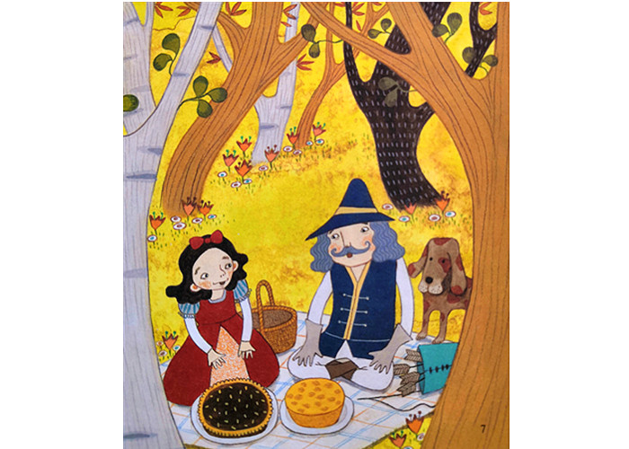 逃离王后追杀的白雪公主藏进了茂密的树林里。他躲在七个小矮人的家里,开心地做自己喜欢的美食。