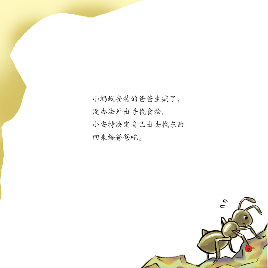 小蚂蚁安特的爸爸生病了,安特决定出门给爸爸找食物吃。