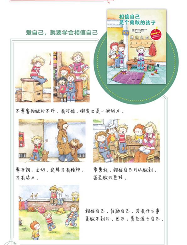 这是一本儿童绘本。本书主要讲述一名叫卡伊的小男孩儿因为没自信,觉得自己什么事情都做不好,所以在幼儿园里受到同学们的嘲笑,他也因此更加自卑。卡伊的爷爷给了他一瓶"神奇的药水",它帮助卡伊找回自信,使他不再自卑,同学们也都很好喜欢现在这个开朗、活波、有自信的卡伊。很后,卡伊发现"神奇的药水"其实只是普通的白水后,他明白,一个人只要有自信心,就一定能做好自己想做的事情。