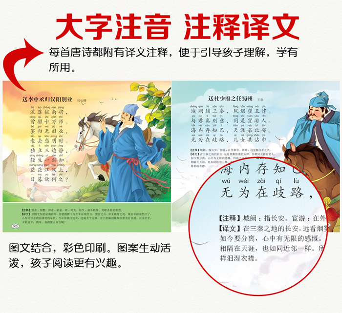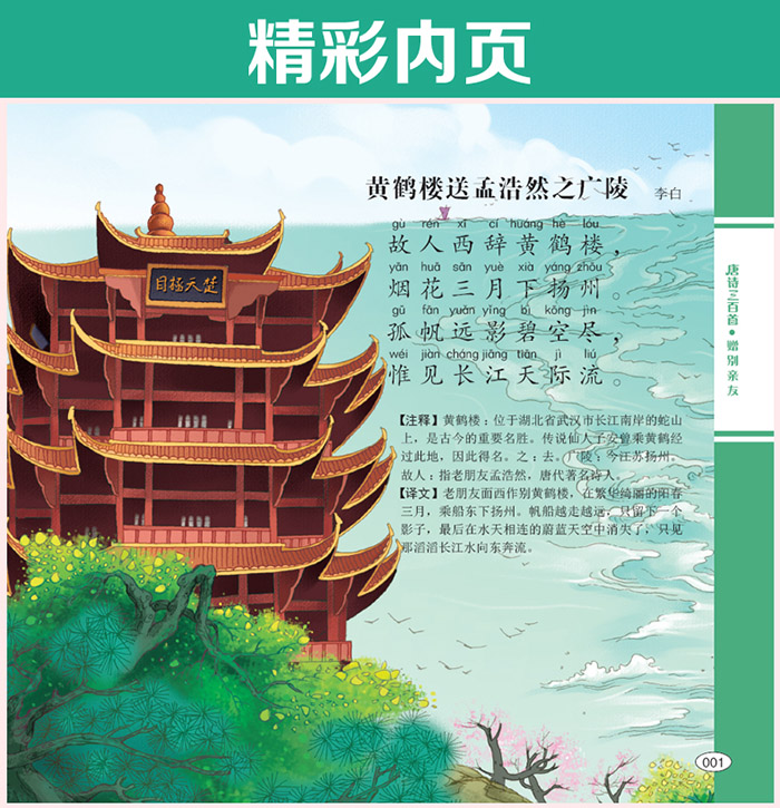 《唐诗三百首》,是每一个中国人乃至外籍华人都必读的图书。《唐诗三百首》中选取的唐诗都堪称经典中的经典,孩子们阅读此书,能在欣赏优美的唐诗的同时陶冶情操,培养语感,为小学语文的古文学习打下良好的基础。这是一本传统经典的唐诗书。