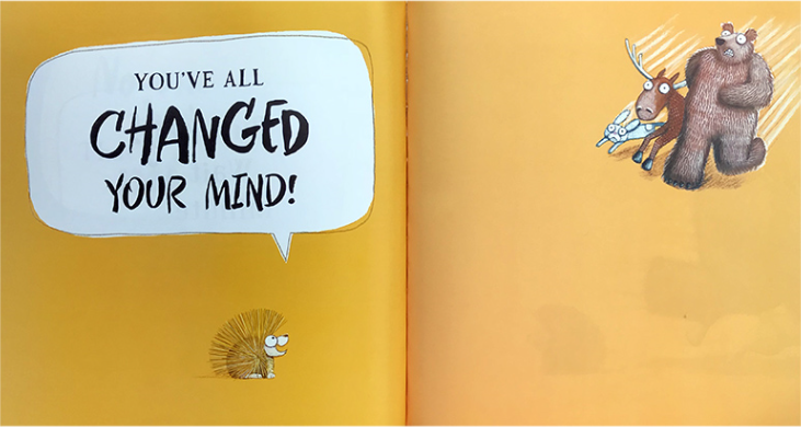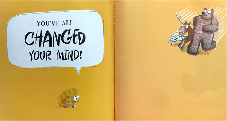 一只长满尖刺的豪猪渴望温柔的拥抱,他希望和其他动物做朋友却吓跑了他们。他伤心地兜兜转转了很久,终于遇到了一只渴望亲亲的小蛇,他们成为了好朋友。结尾非常温情,让孩子们感悟到朋友之间的信任与关怀。
