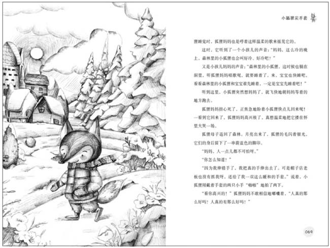 狐狸妈妈想,如果儿子可爱的小手被冻伤了,那可不得了,天黑了,到镇上去给儿子买一双适合它戴的毛线手套吧!