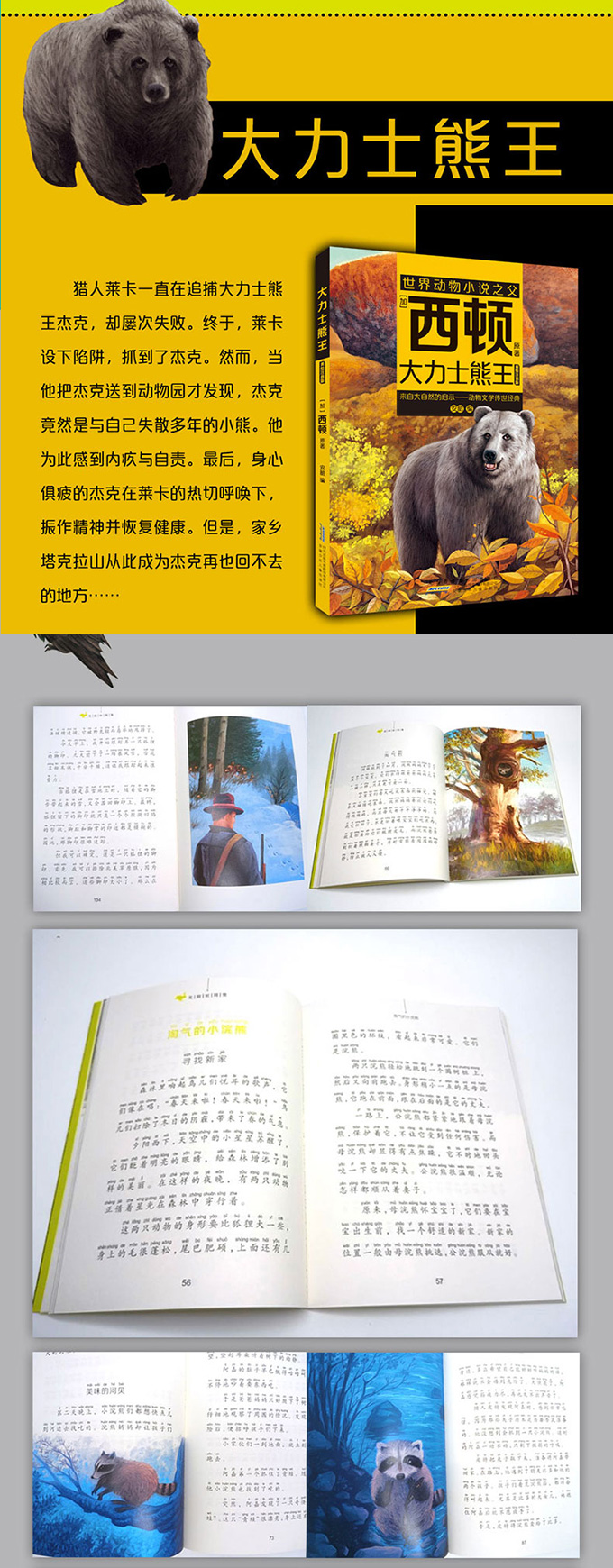 “动物小说之父”、加拿大作家西顿非常热爱大自然中的野生动物,他通过细致的观察和科学的研究,创作出了许多真实而生动的动物故事。西顿创作的故事别开生面,苏烁了野生动物精彩的一生;他们一次一次地冒险,一步一步地成长,让自己的生命变得更加丰盈。