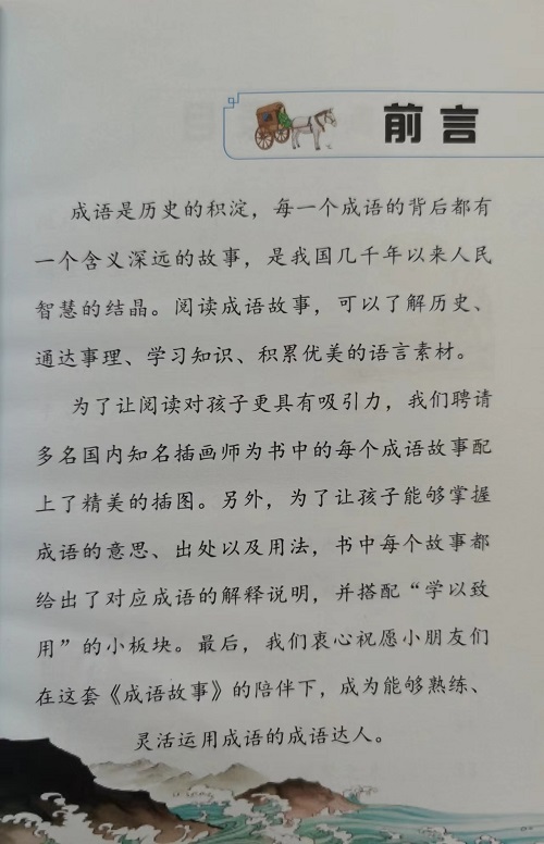 成语是历史的积淀,每一个成语的背后都有一个含义深远的故事,是我国几千年以来人民智慧的结晶。阅读成语故事,可以了解历史通达事理、学习知识、积累优美的语言素材 为了让阅读对孩子更具有吸引力,我们聘请多名国内知名插画师为书中的每个成语故事配上了精美的插图。另外,为了让孩子能够掌握成语的意思、出处以及用法,书中每个故事都给出了对应成语的解释说明,并搭配“学以致用”的小板块。最后,我们衷心祝愿小朋友们在这套《成语故事》的陪伴下,成为能够熟练、 灵活运用成语的成语达人。