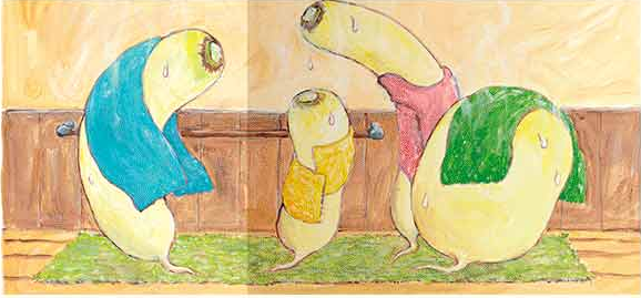 《萝卜先生,快来泡澡》是一本适合3-6岁宝宝的食育绘本。 今天是白萝卜兄弟们变身成菜的日子。“到浴缸里洗干净吧。” 白萝卜们和萝卜叶告别,排成队来到浴室。往身上泼点水,泡在热水里,和鱼、炸肉块斗斗嘴,唱首歌,比比赛……回到厨房,变成菜。萝卜先生的洗澡过程可太丰富有趣了。