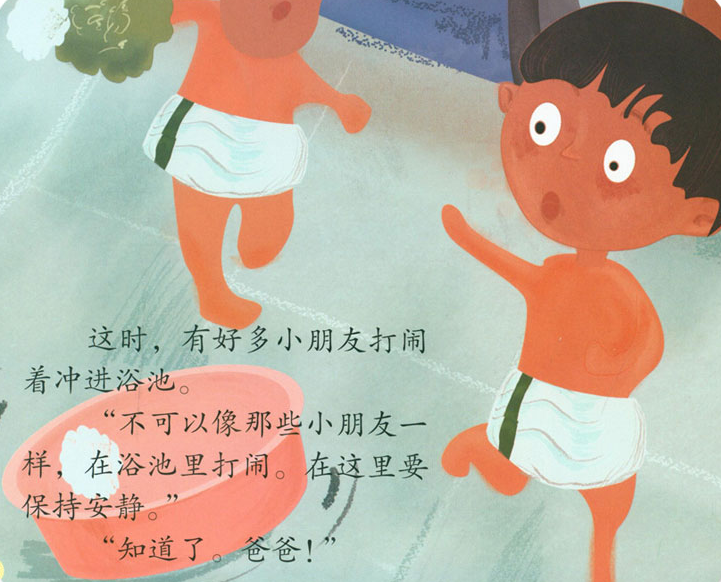 爸爸带我们一起去澡堂洗澡,澡堂是公共场所,我们既要保证自己的人身安全,也要注意不能影响到别人,还要把自己洗得干净又舒服 这些我们在洗澡时都要注意到哦。本绘本可以带领父母及教育工作者对教育观念和方法进行思考,让孩子快乐地成长 ,并希望绘本能够完成一定程度上原由父母应该承担的教育职责。