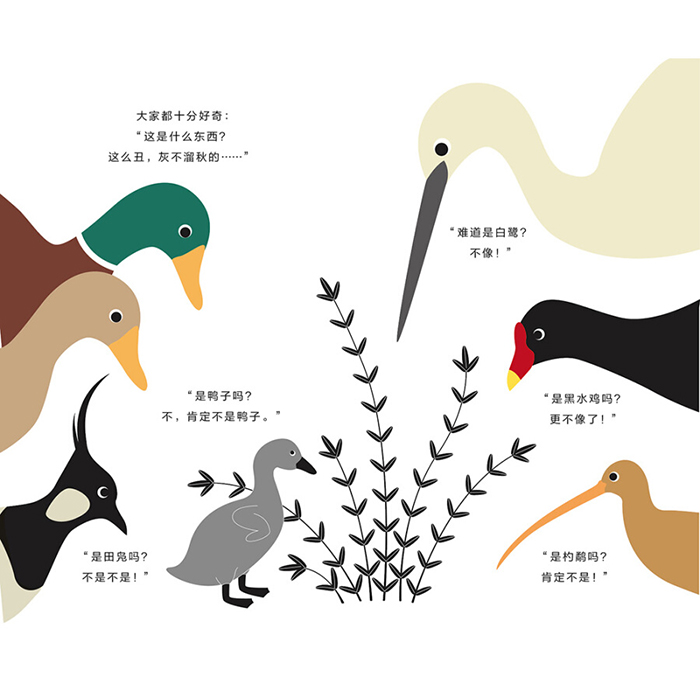 《嘎嘎》改编自安吉丽克?弗里朗编写并导演的同名剧目,灵感源自安徒生的童话《丑小鸭》。一天, 嘎嘎突然破壳而出, “我既不是小鸭子,也不是……那我是……”于是他决定去弄清楚自己到底是谁。一路上它遇到了火烈鸟、老鹰、鹈鹕……可自己和他们一点都不像。终于有一天,嘎嘎在水中看到了自己的倒影。原来,它已经变成了一只美丽的白天鹅。