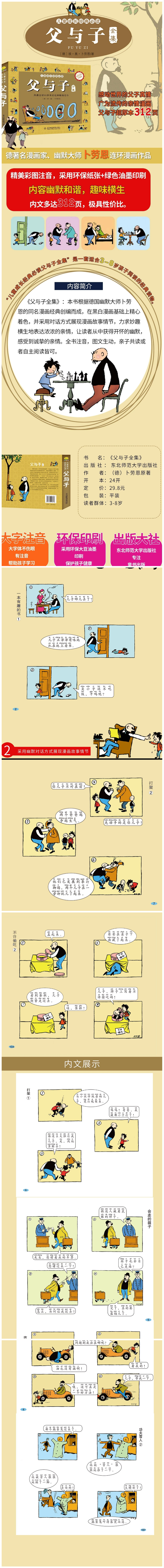 父与子漫画充满了人性的温情和幽默,把普通民众的生活通过父子间的表露刻画出来。洋溢着暖暖的人情味。由于一部分内容取材于一些特殊的社会现象,使得整部作品中,生活背景发生了一些改变,但父亲和儿子那善良、乐观的本性却一直没有改变。因为他们具有这样美好的品质,所以遭遇困难不绝望,获得意外财富不忘本,一直过着许多人向往的快乐生活:平常而快乐,温馨又奇妙。