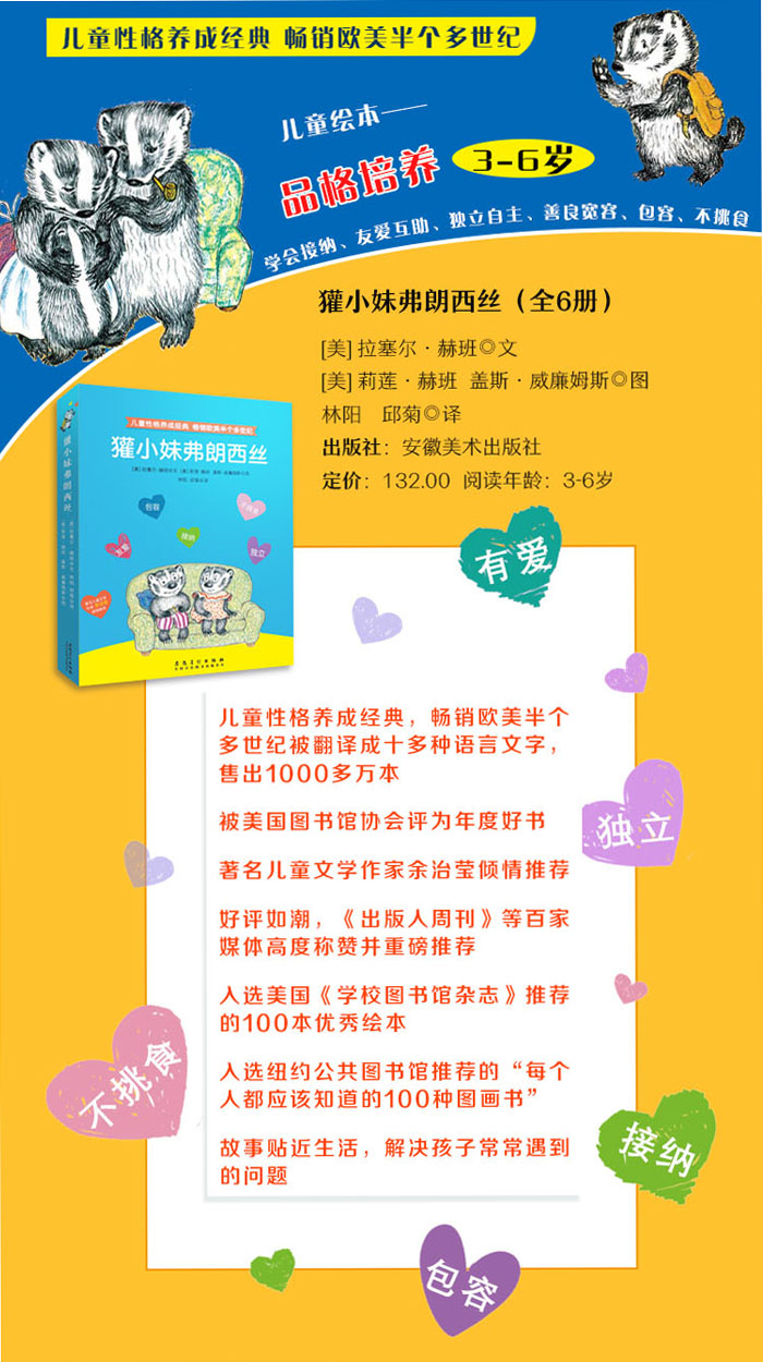 年龄/主题/大奖/大师: 4-5(中班)、5-6(大班)、6-8(1-2年级)、8-10(3-4年级)、品格养成、饮食、