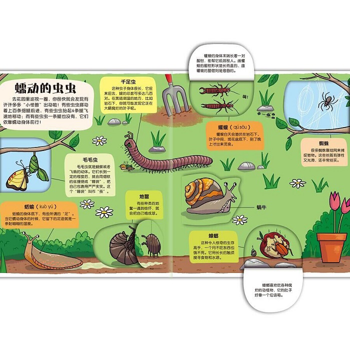 你所知道的虫虫有哪些?哪些虫虫是益虫?哪些虫虫是群居的?……有关虫虫的小秘密,你究竟知道多少呢?活泼幽默的语言,趣味盎然的图画,让小读者在笑声中轻松学知识。有趣的翻翻页设计,增强互动,激发小读者的探索兴趣!