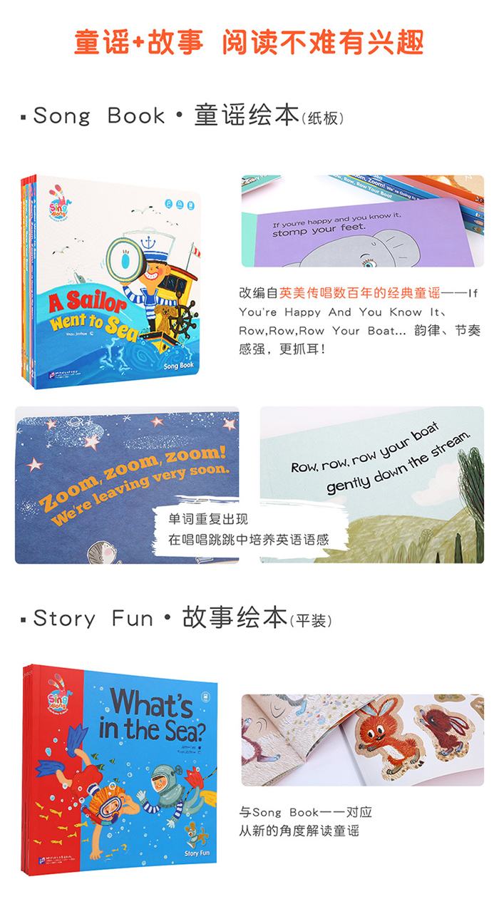 彩虹兔 Sing Along欢唱童谣英文 进口原版书籍(第1辑)【平装+纸板】(点读版)