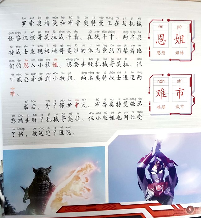 依据科学认读的原则,精选了儿童较感兴趣的英雄罗布系列故事中的6个主题故事。本书稿为第1册,选取精美的图片,配以精心制作的台词,编辑成精彩故事书,让儿童在听故事、读故事的过程中感知图画、认识汉字,培养认读的兴趣,提高认读的能力。