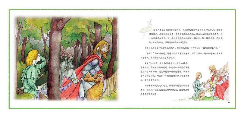 年轻侍从应国王的要求,跟随着骑士踏上了一条漫长又危险的道路。危险系数一次次增加,他最后凭借智慧的书卷胜过危险,独自与邪恶的怪兽争战,取得了胜利。伴随着侍从的旅程,孩子们也会认识到,智慧和家训的重要性。