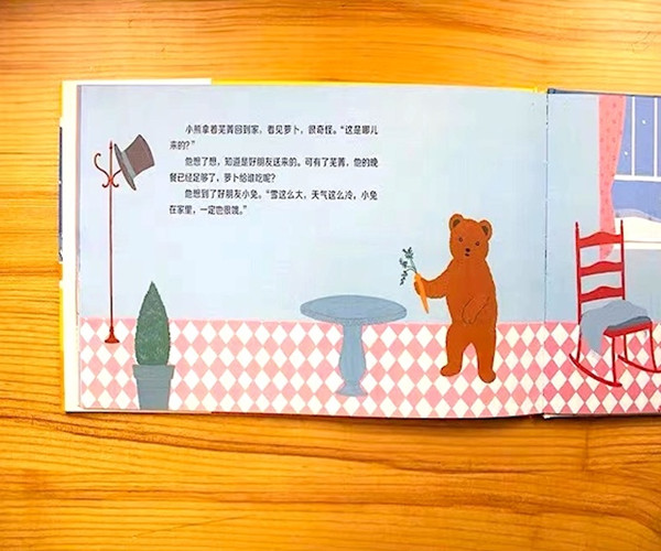 《萝卜回来了》是广西师范大学出版社魔法象图画书王国推出的作品之一。 这是一则流传深远的中国经典童话故事,向小读者展现了友爱与善良。 大雪纷飞,山野中白雪皑皑。小兔家中快没吃的了,所以出门去觅食。小兔发现两根萝卜,他很高兴,想吃一根,留一根。这么冷的下雪天,小兔想到小猴肯定没有东西吃了,就送了一根到他家里。小猴出门找吃的东西了,他找到几颗花生后回家了。小猴回到家觉得奇怪,家里为什么有根萝卜呢?小猴想到小鹿没有东西吃,就把萝卜送到了小鹿家……小熊看到家里突然出现的萝卜,想着这么冷的雪天,小兔肯定没有吃的东西,就准备送给小兔。小熊来到小兔家一看,小兔正在睡觉。