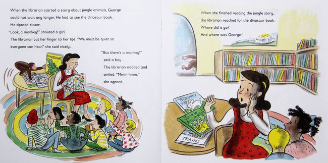 George is lucky to arrive at the library just in time for story hour. But it’s not easy for a little monkey to sit still too long. George finds so many books he wants to read and can’t wait to take them home. From selecting books to getting his very own library card, George’s day at the library celebrates all the fun of reading!