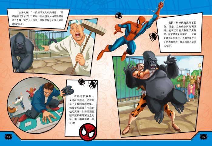 对于4—8岁的男孩来说,一本好的图书既要有引人入胜的故事情节和细节丰富的精彩图片,还要有让男孩有身临其境的感觉,融入故事所要营造的氛围,潜移默化地感受图书主人公的人格魅力。当然,这一切的前提必须是男孩熟悉并喜爱着这本图书的主人公。《超级英雄就是我》正是这样一套以故事为主、带领男孩挖掘自身优点、启迪男孩创意思维的互动故事书。书中的主人公——蜘蛛侠无疑能够担当得起这样一个角色,他每一次智斗反派的经历都充满了惊险与乐趣,而他的每一次成长也都诠释了力量、责任与梦想。正是这样的情节描写与人物设定,男孩们可以看到蜘蛛侠是如何学习责任与担当、勇于接受挑战的心路历程。